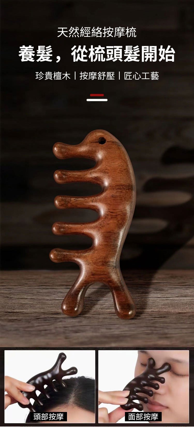 7分鐘前天然檀木美容經絡按摩梳 ◀頭臉按摩◀疏通經絡◀刮痧排毒 按摩穴位促進排毒,面部提拉緊緻 - 【疏通經絡,刮痧排毒】3入組HK$296